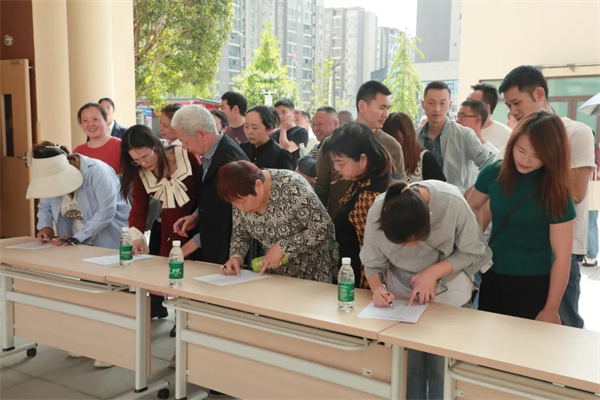 新城一幼园长龚丽丽、园长助理程晨、教师代表及大班全体家长到场参与,九江新城小学校长林家锐、副校长冯玺、党政办主任涂春芳、德育处汤梦老师及相关工作人员共同出席,活动由新城一幼保教干事朱燕萍主持。