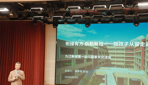 九江新城小学校长林家锐以“衔接有方 启航新程——陪孩子从容走进小学”为主题发表讲话,分享了学校办学成果与发展历程,并就幼小衔接、家庭教育等方面进行了深入阐释。