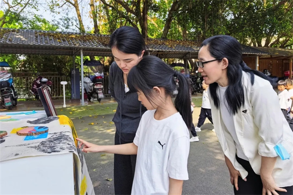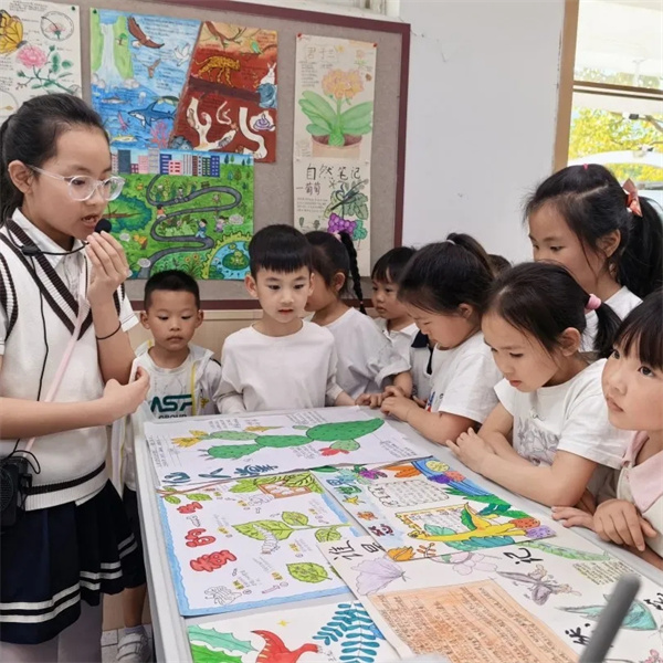 在版画区域,色彩明快、童趣满满的版画,是小学的哥哥姐姐们,充满创意、构图灵动的作品。大班孩子们认真欣赏、轻声交流,邂逅童真美学,感受了浓郁的校园艺术文化气息。