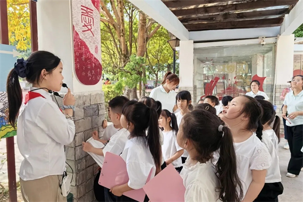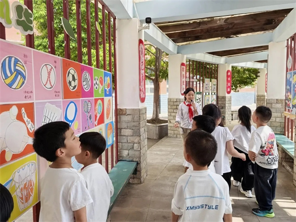 国学长廊里,曾欣宇老师和六年级的姐姐一起为孩子们细致讲解了学校多年文化积淀。一步一景皆是文化,一言一行浸润童心,让孩子感受校园浓厚的文化底蕴。
