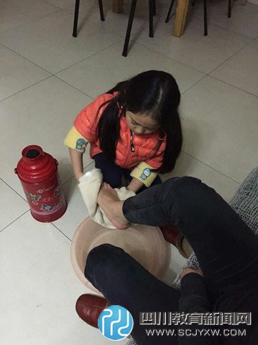 听到老师们的描述,孩子们懂得了西昌凉山小朋友对读书的渴望,更加珍惜今天的幸福生活。红包里还鼓励小朋友们做几件公益的事,感恩自己的父母给予的爱,各班孩子们反应热烈。钟雨田老师班的小朋友们争相表达了对父母的感谢,并写下对爸爸妈妈的祝福亲手送他们的手上;葛勇老师班的小朋友们亲自为爸爸妈妈打来热水,细心的为他们洗脚,告诉爸爸妈妈们,您们辛苦了!